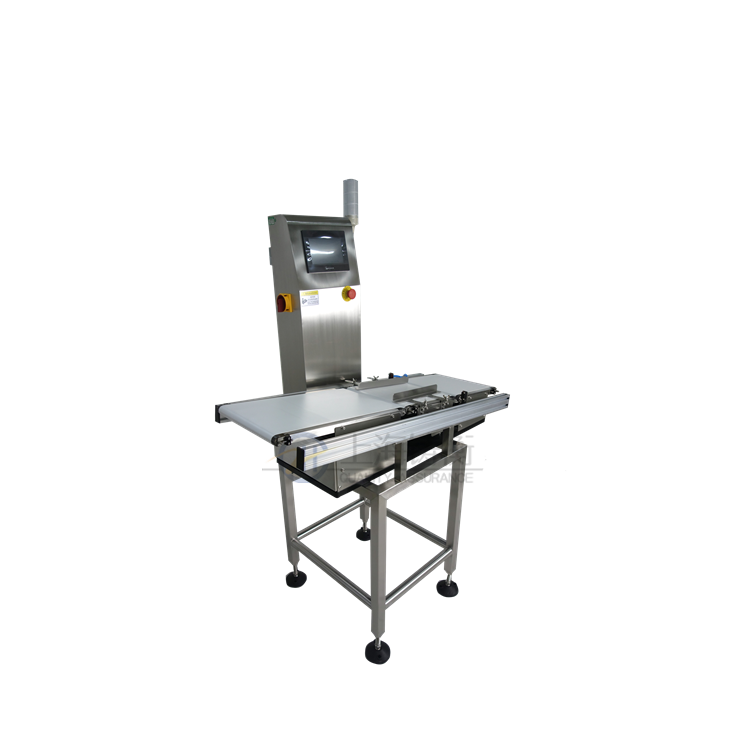 包裝產(chǎn)品通過檢重秤稱重檢測(cè),合格的送回原有輸送帶,不合格的予以剔除(或報(bào)警停機(jī)),并且具有根據(jù)設(shè)定對(duì)產(chǎn)品進(jìn)行分類和統(tǒng)計(jì)等功能。
